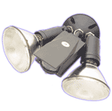 Der Außen- Bewegungsmelder ist wasserfest und kann direkt die zwei je max. 500W dem Sensor integrierten Lampen schalten. |