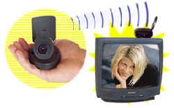 The XCAM2 is a Tiny wireless Camera* Transmit LIVE Colour video and crisp audio to any TV/VCR/ Computer Monitor.